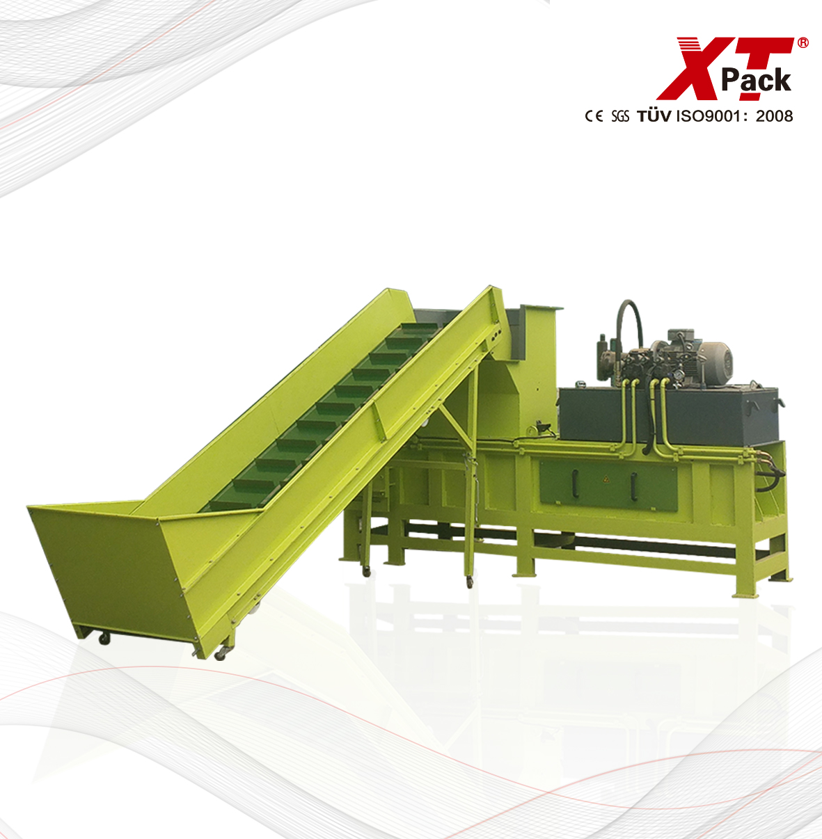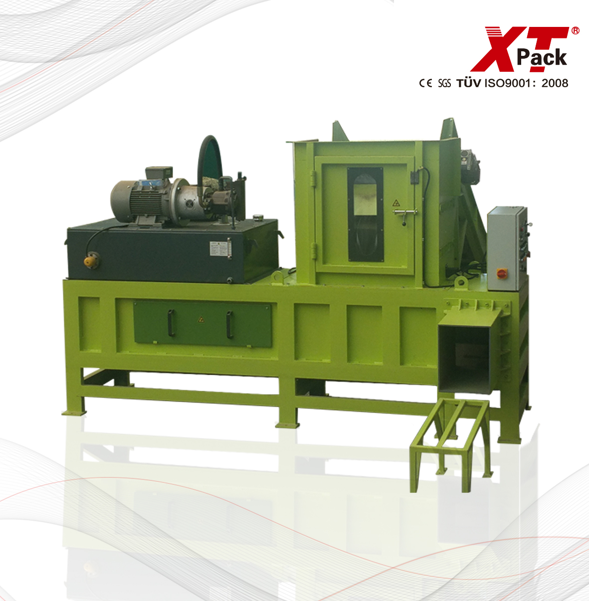 型號(hào) XTB-400 加料口尺寸(L*H) 100*650mm 包塊尺寸(L*W*H, H可調(diào)) 650*300*400mm 包塊重量 40-50kgs 功率 11kW 機(jī)器重量 3000kgs 機(jī)器外觀(guān)尺寸 3300*3600*2000mm