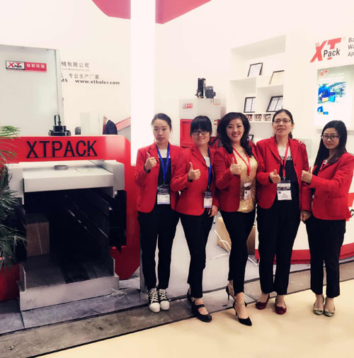In the exhibition, XTPACK had introduced many of their hydraulic balers to visitors, like carton baling press, paper baler machine, down stroke baler, bottle baling machine, cans baler, automatic cardboard press, manual horizontal baling machine, fiber baling machines, etc.