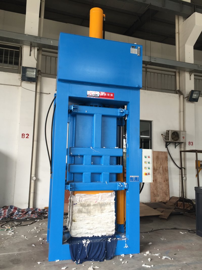 Widely applied by second-hand clothes recycling plants for compressing clothing, comforters, shoes etc. Hydraulic lifting chamber door improves the work efficiency, conveniently for packaging and the tight crossed tying.Features