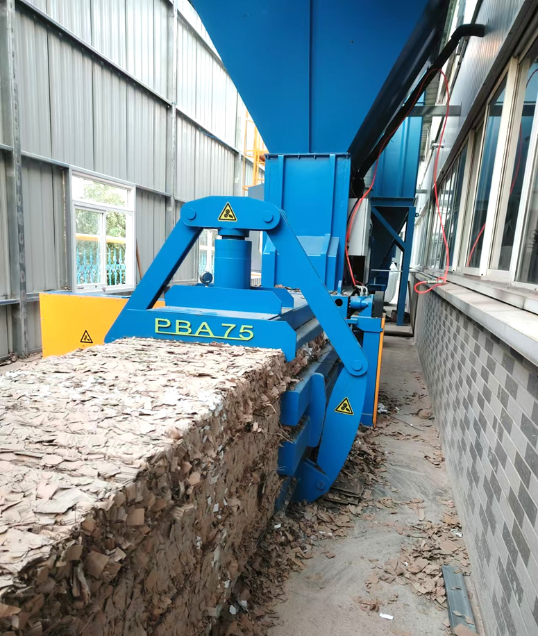 型號(hào) PBA75 PBA85 PBA85L PBA1108 壓力 40tons 60tons 60tons 80tons 主電機(jī)功率 11kW 15kW 18.5kW 30kW 冷卻方式 工業(yè)油冷機(jī)/風(fēng)冷 循環(huán)時(shí)間 21s 19s 24s 24s 油箱尺寸 540L 540L 600L 1000L 捆包道數(shù) 3lines 4lines 4lines 4lines 捆包鐵絲規(guī)格 Ø2.4-3.2 Ø2.4-3.2 Ø2.4-3.2 Ø2.4-3.2 加料口尺寸(L×W) 1250×720mm 1250×720mm 1650×720mm 1680*1050mm 包塊尺寸(L×W×H, L可調(diào)) L×750×750mm L×750×850mm L×750×850mm L*1100*800mm 打包密度(OCC) 350-450kgs/m³ 380-480kgs/m³ 380-480kgs/m³ 450-520kgs/m³ 產(chǎn)量(30-60kgs/m³) 1.5-3tons/h 2.5-5tons/h 3.5-6tons/h 4-8tons/h 機(jī)器重量 7tons 8tons 9tons 12tons 機(jī)器外觀尺寸 5950×3200×2500mm 5950×3200×2500mm 6800×3200×2500mm 7200×4000×3500mm 送料裝置(可選) Cyclone/conveyor Cyclone/conveyor Cyclone/conveyor Cyclone/conveyor