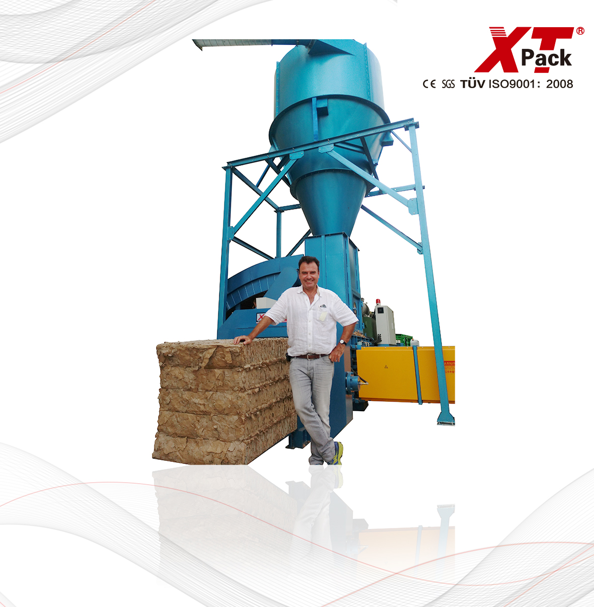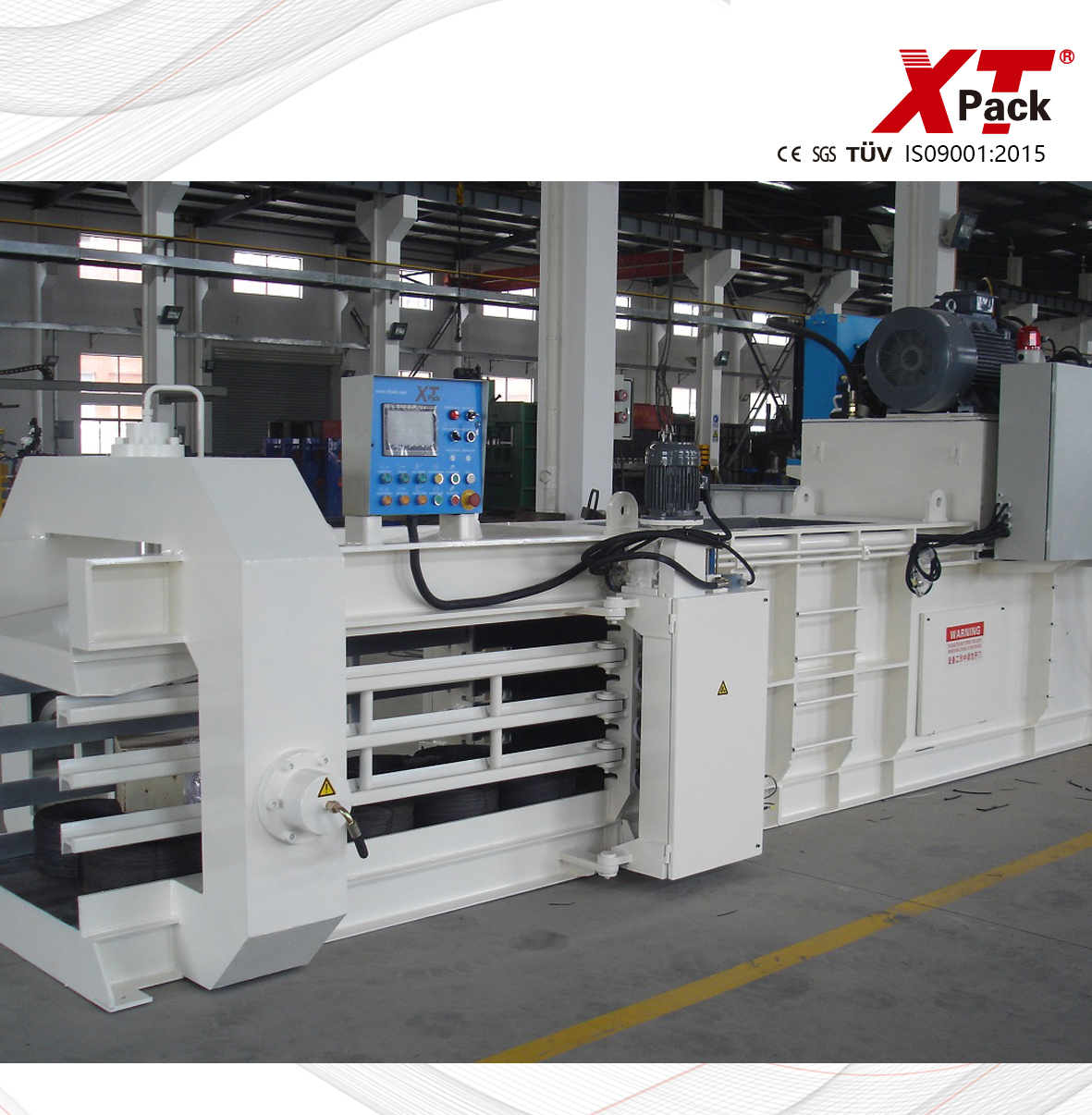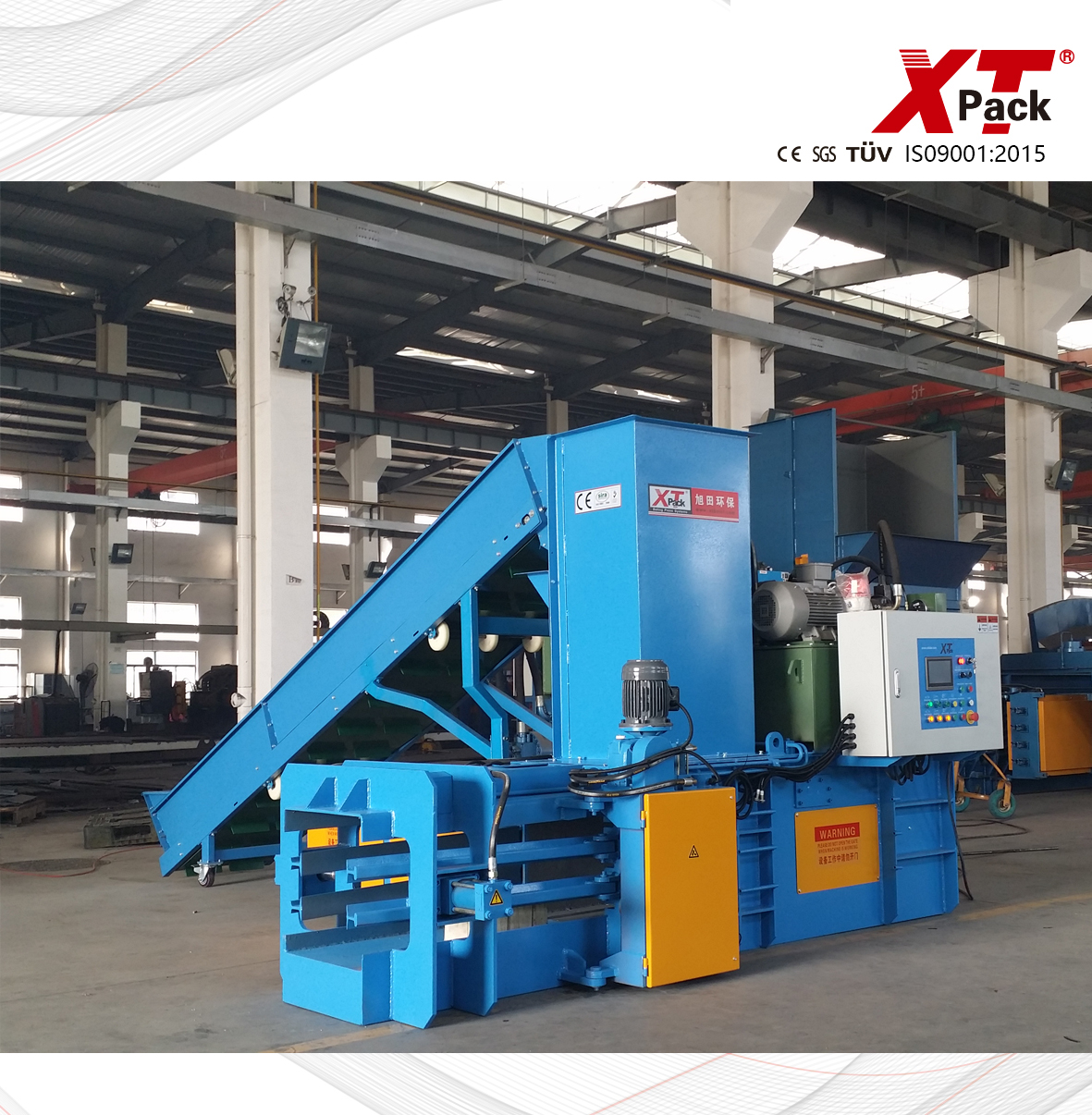 型號 XTY-200W5050-10 XTY-400W7575-20 XTY-400W7280-20 XTY-600W7585-25 壓力 20tons 40tons 40tons 60tons 主機功率 11kw 15kw 15kw 18.5kw 冷卻 air cooler / water cooler air cooler / water cooler air cooler / water cooler air cooler / water cooler 循環(huán)時間(空載) 14s 17s 20s 16s 油箱尺寸 280L 540L 540L 600L 捆包道數(shù) 3lines 3lines 4lines 4lines 捆包鐵絲規(guī)格 Ø2.4-3.2 Ø2.4-3.2 Ø2.4-3.2 Ø2.4-3.2 加料口尺寸 (L*W) 750*480mm 1250*720mm 1250*690mm 1250*720mm 包塊尺寸 (L*W*H,L可調(diào)) L*500*500mm L*750*750mm L*720*800mm L*750*850mm 打包密度 (OCC) 350-450kgs/m3 350-450kgs/m3 350-450kgs/m3 380-480kgs/m3 產(chǎn)量 (30-60kgs/m3) 1-1.5tons/h 1.5-3tons/h 1.5-3tons/h 2.5-5tons/h 機器重量 3tons 7tons 7tons 8tons 機器外觀尺寸 3600*2500*1650mm 5950*3200*2500mm 5950*3200*2500mm 6100*3250*2500mm 送料裝置 cyclone / conveyor cyclone / conveyor cyclone / conveyor cyclone / conveyor