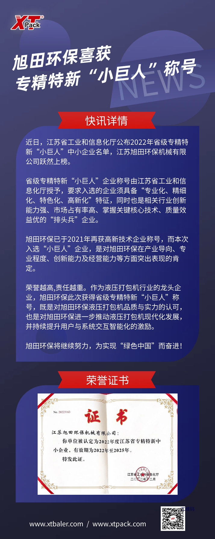 旭田環(huán)保喜獲專精特新“小巨人”稱號