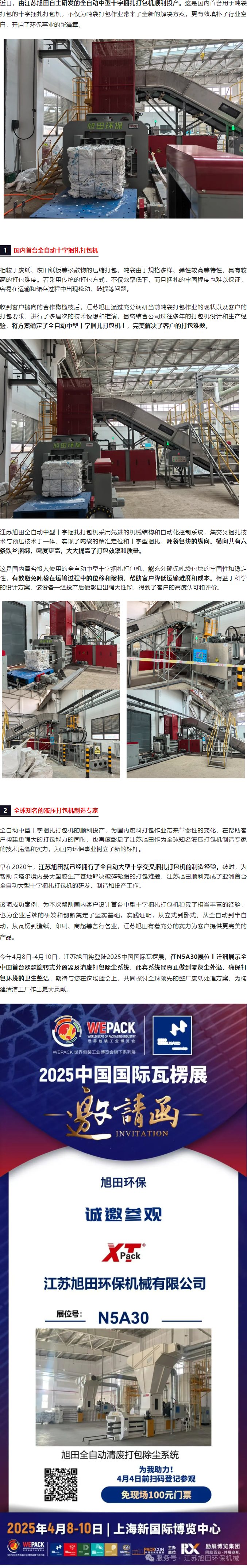 江蘇旭田全自動(dòng)十字捆扎打包機(jī)順利投產(chǎn),系國內(nèi)首臺(tái)!