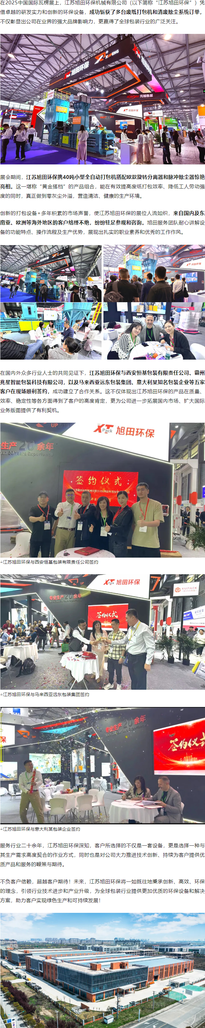 江蘇旭田亮相中國國際瓦楞展,現(xiàn)場簽約五家知名客戶